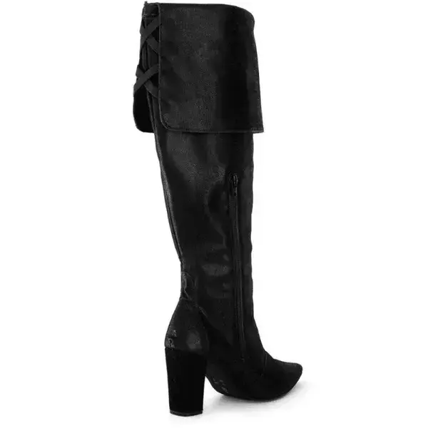 Produzida em material nobucado de alta qualidade, oferece textura aveludada e macia ao toque. O cano longo de 50 cm alonga a silhueta, enquanto o salto alto e grosso de 9 cm garante postura e elegância, sem abrir mão da estabilidade. O solado antiderrapante proporciona segurança ao caminhar, tornando-a perfeita para o dia a dia ou ocasiões especiais.